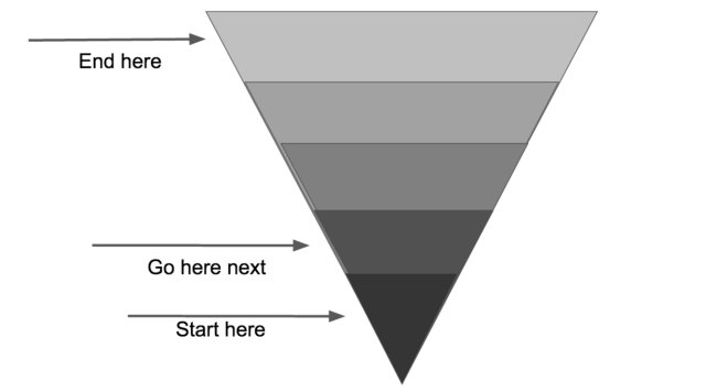 Funnels are essentially inverted pyramids divided into stages. The objective is to move through the funnel from top to bottom, while trying to lose as little as possible in each stage.