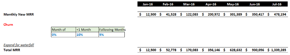 A very important consideration when projecting SaaS revenue is churn. Your customer churn rate is inversely related to your retention rate, which also makes it inversely related to your ability to sustainably grow revenue.