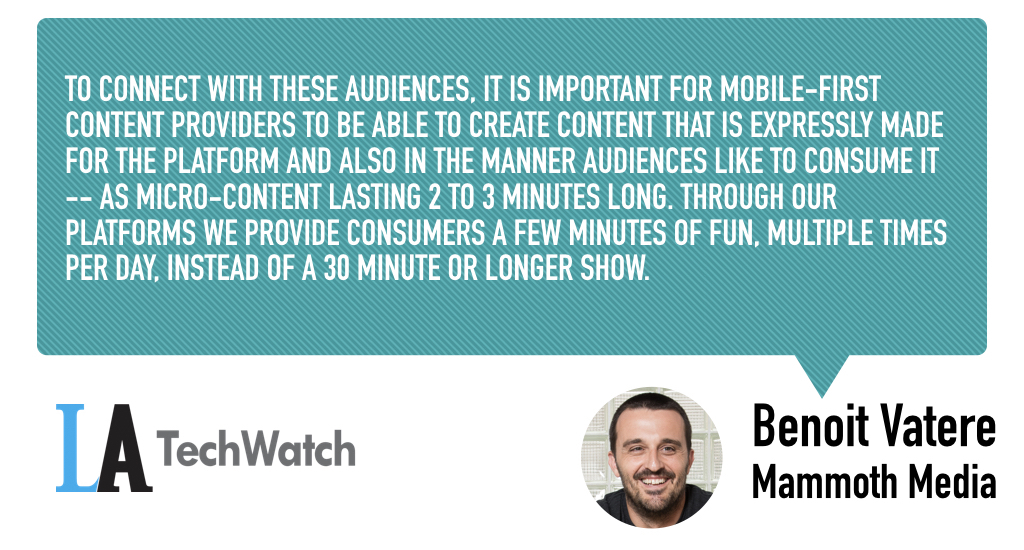 To connect with these audiences, it is important for mobile-first content providers to be able to create content that is expressly made for the platform and also in the manner audiences like to consume it — as micro-content lasting 2 to 3 minutes long. Through our platforms we provide consumers a few minutes of fun, multiple times per day, instead of a 30 minute or longer show.