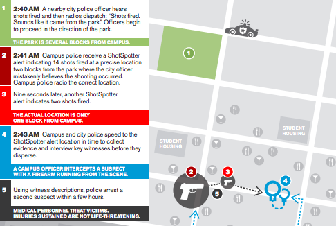 Another fatal lesson from the Parkland shooting was the school’s video feed was on a twenty minute delay, and thus provided authorities with unreliable information, even though AI enhanced surveillance is widespread throughout Florida. In addition to utilizing computer vision to actively identify shooters and locate their positioning, well-funded schools are now deploying a variety of sensor-fusion technologies to keep students safe. ShotSpotter, a leader in urban and campus gunshot detection, has created a new platform called SecureCampus to provide first responders with real-time information on gun violence. Its acoustical monitoring platform quickly verifies live shooting events to automatically dispatch security personnel the precise indoor and/or outdoor location, reducing response time from minutes to seconds. ShotSpotter’s system is completely integrated into existing surveillance systems and communications platforms. Already, its technology is being beta tested by the University of Maryland.