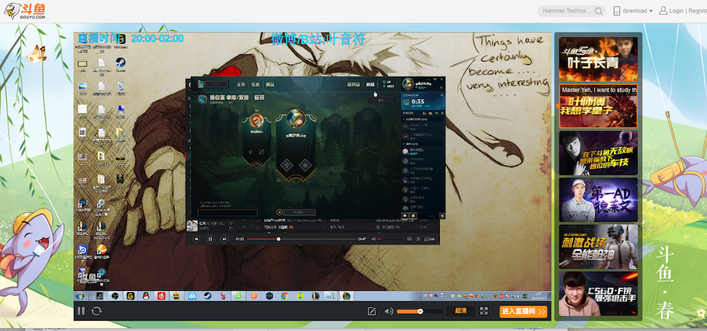 Description: Douyu TV is an online platform for live videos of people playing games.