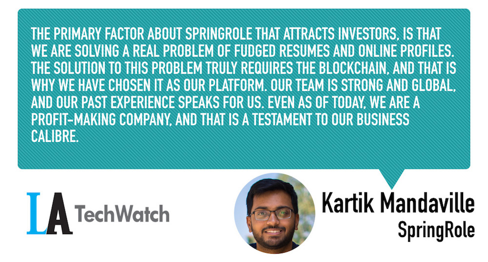 The primary factor about SpringRole that attracts investors, is that we are solving a real problem of fudged resumes and online profiles. The solution to this problem truly requires the blockchain, and that is why we have chosen it as our platform. Our team is strong and global, and our past experience speaks for us. Even as of today, we are a profit-making company, and that is a testament to our business caliber.
