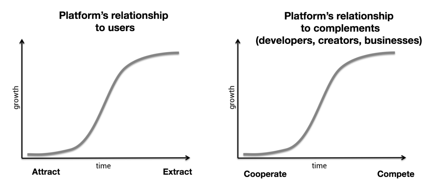 As Chris Dixon recently pointed out, The natural tendency of centralized platforms is to increasingly extract value from users and compete with their early collaborators: