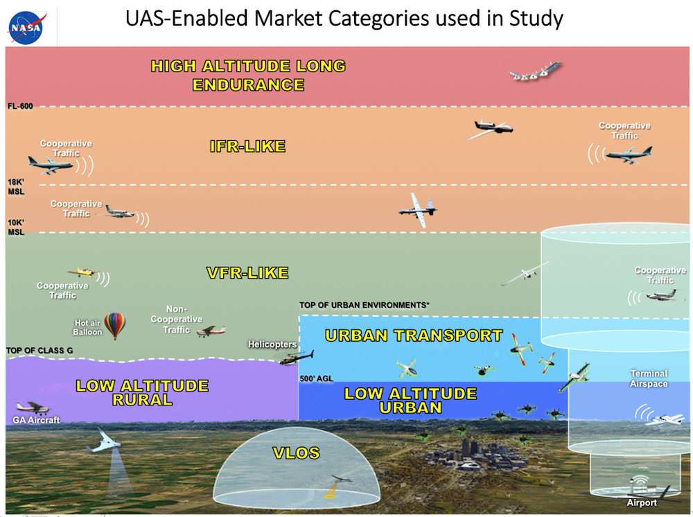NASA is a key partner in counseling the FAA in integrating commercial UAS into the NAS. Charged with removing the “technical and regulatory barriers that are limiting the ability for civil UAS to fly in the NAS” is Davis Hackenberg of NASA’s Armstrong Flight Research Center. Last year, we invited Hackenberg to present his UAS vision to RobotLabNYC. Hackenberg shared with the packed audience NASA’s multi-layered approach to parsing the skies for a wide range of aircraft, including high altitude long endurance flights, commercial airliners, small recreational craft, quadcopter inspections, drone deliveries and urban aerial transportation. Recently the FAA instituted a new regulation mandating that all aircraft be equipped with Automatic Dependent Surveillance-Broadcast (ADS-B) systems by January 1, 2020. The FAA calls such equipment “foundational NextGen technology that transforms aircraft surveillance using satellite-based positioning,” essentially communicating human-piloted craft to computers on the ground and, quite possibly, in the sky. Many believe this is a critical step towards delivering on the long-awaited promise of the commercial UAS industry with autonomous beyond visual line of sight flights.