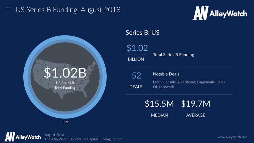 $1.02B was invested across Series B rounds in the US in August Tweet This