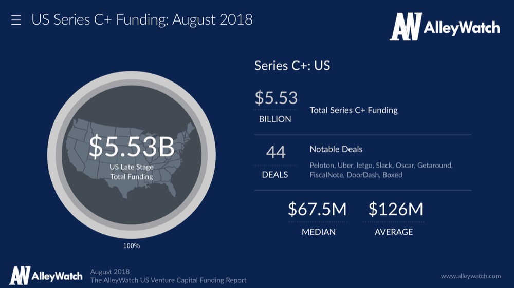 The median Series C+ round in the US for August was $67.5M Tweet This