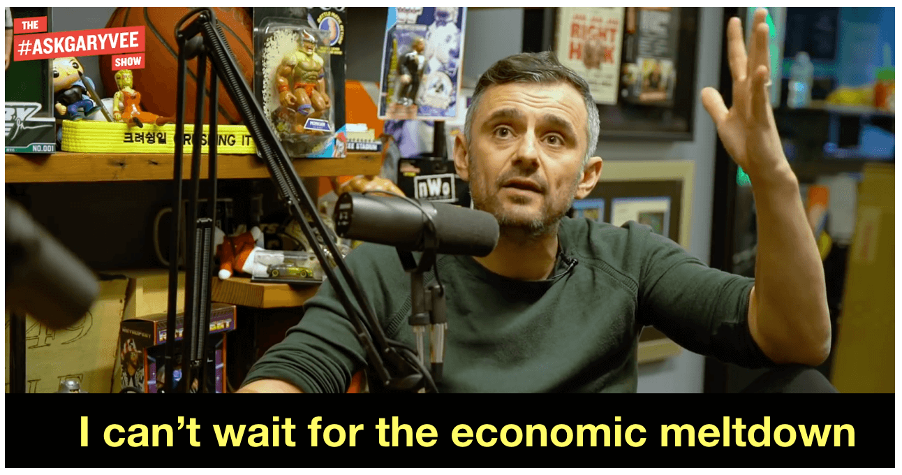 But when the economy melts, big businesses will fold because they’re overleveraged… and the ones that hang on will get their marketing budgets cut massively. That means they’ll have to make $1 work like $10, and VaynerMedia will grow much faster because we’re established as knowing how to do that.