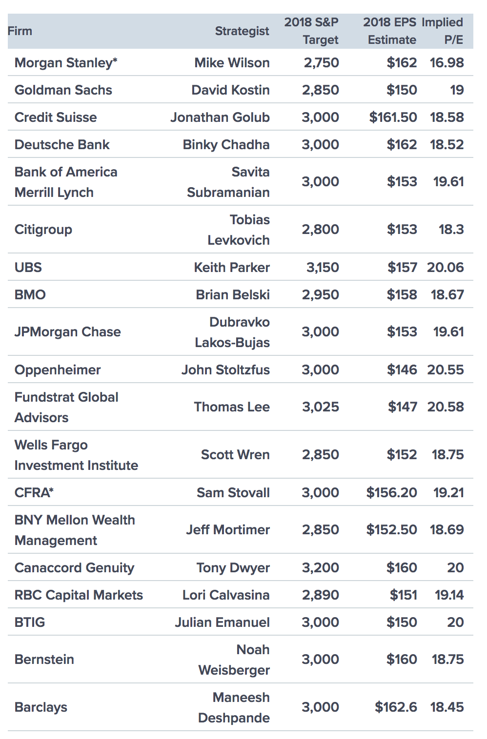 The stock market is the same as weather. While the weather channel never trots out weather experts to tell is where the weather is going to be in three months, CNBC fills its day with analysts projecting out three months or longer. Below is a chart with 19 predictions (as of September 5th, when the S&P was at 2,886) for where the S&P was going to finish the year: