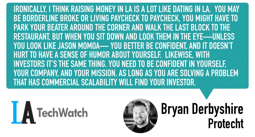 Ironically, I think raising money in LA is a lot like dating in LA. You may be borderline broke or living paycheck to paycheck, you might have to park your beater around the corner and walk the last block to the restaurant, but when you sit down and look them in the eye—unless you look like Jason Momoa— you better be confident, and it doesn’t hurt to have a sense of humor about yourself. Likewise, with investors it’s the same thing. You need to be confident in yourself, your company, and your mission. As long as you are solving a problem that has commercial scalability will find your investor.