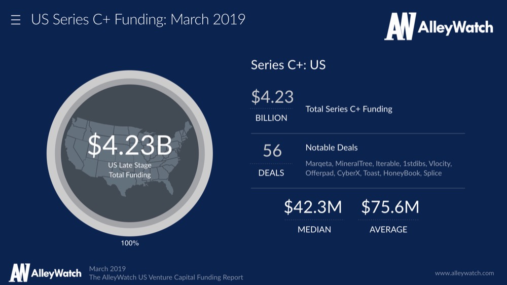 The median Series C+ round in the US for March was $42.25M Tweet This