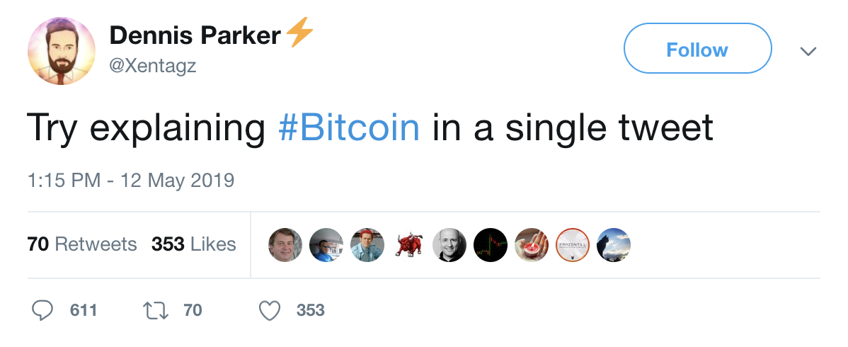 In a recent post, “Toxic Bitcoin Permabull” Dennis Parker asked people to explain Bitcoin in a Tweet: