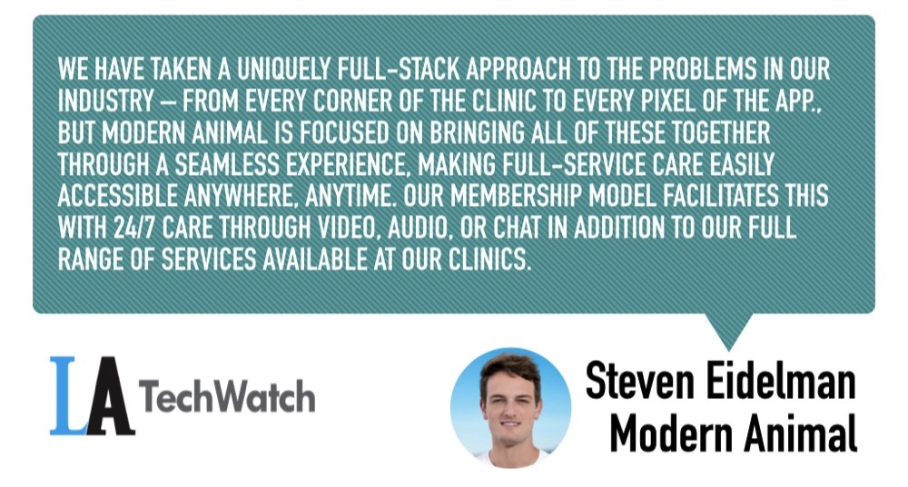 LA TechWatch sat down with Modern Animal CEO and Cofounder Steven Eidelman to learn about how his experience as a pet owner and an entrepreneur inspired him to modernize the veterinary industry, the company’s future growth plans, and recent round of funding.