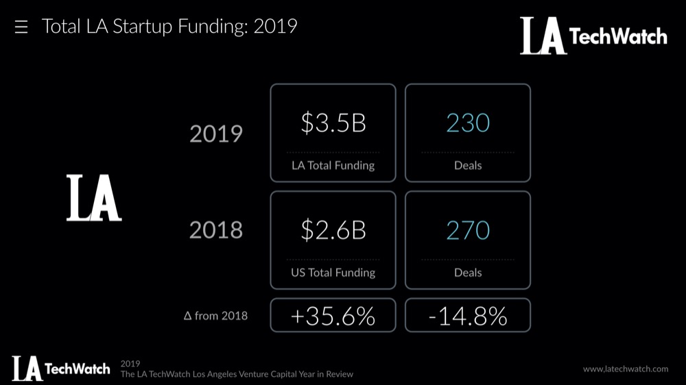 $3.5B was invested in LA #startups in 2019 in LA across 230 deals Tweet This
