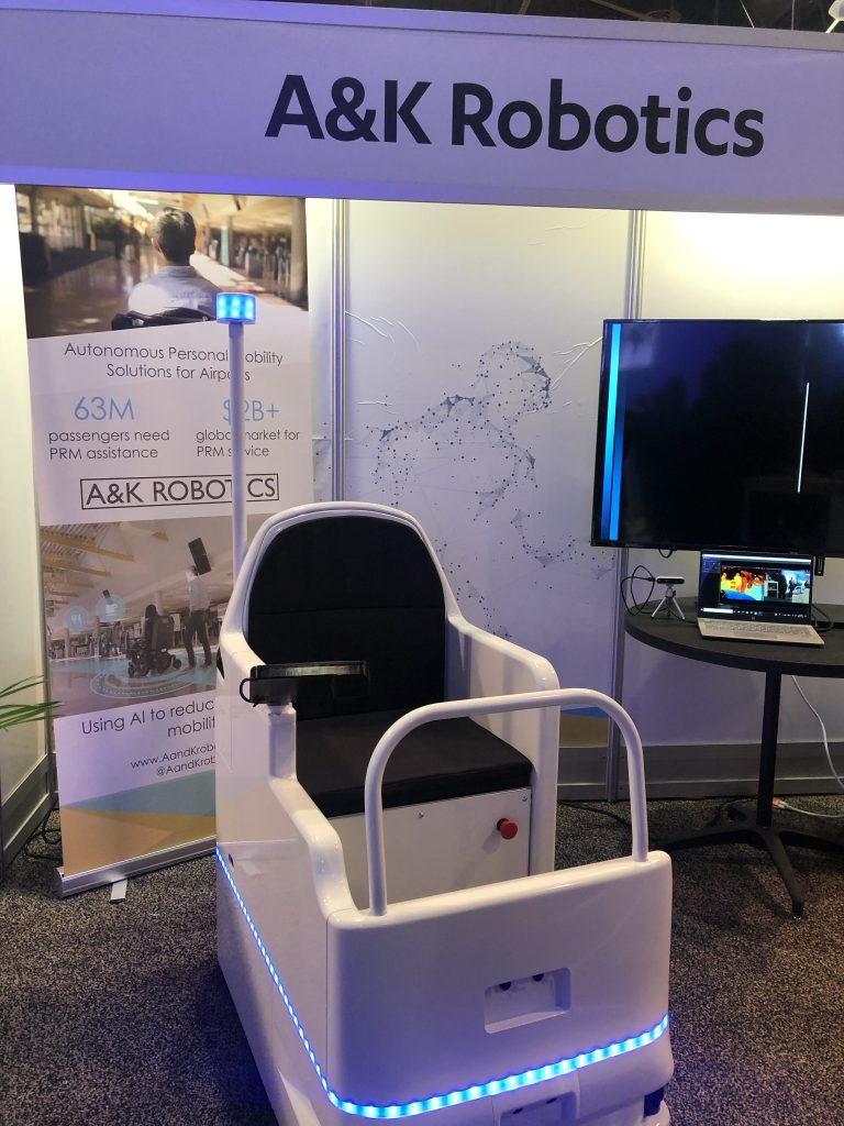 Walking back into the LVCC from the Westgate, I heard Toyoda’s keynote in my head – “mobility for all” – forming a prism in which to view the rest of the show. Looking past Hyundai/Uber’s massive Air Taxi and Omron’s ping-pong playing robot; thousands of suited executives led me under LG’s television waterfall to the Central Hall. Hidden behind an out of place Delta Airlines lounge, I discovered a robotics startup already fulfilling aspects of the Woven City. Vancouver-based A&K Robotics displayed a proprietary autonomous mobility solution serving the ballooning geriatric population. The U.S. Census Bureau projects that citizens over the ages of 65 will double from “52 million in 2018 to 95 million by 2060” (or close to a quarter of the country’s population). This statistic parallels other global demographic trends for most first world countries. In Japan, the current population of the elderly already exceeds 28% of its citizenry, with more than 70,000 over the age of 100. When A&K first launched its company it marketed for turning manual industrial machines into autonomous vehicles. Today, the Canadian team is applying its passion for unmanned systems to improve the lives of the most vulnerable – people with disabilities. As Jessica Yip, A&K COO, explains, “When we founded the company we set out to develop and prove our technology first in industrial environments moving large cleaning machines that have to be accurate because of their sheer size. Now we’re applying this proven system to working with people who face mobility challenges.” The company plans to initially sell its elegant self-driving wheelchair (shown below) to airports, a $2 billion opportunity serving 63 million passengers worldwide.