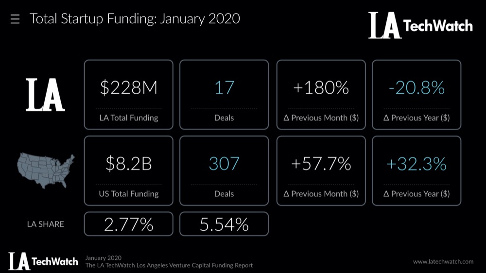 LA VC funding in January was +180% from last month and -20.8% from the same period last year Tweet This