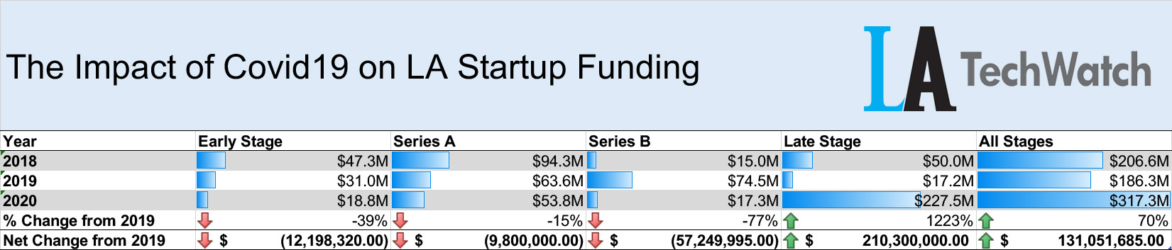 Late-stage startup funding in LA is up $210M from year-ago levels since the lockdown started on March 15th Tweet This