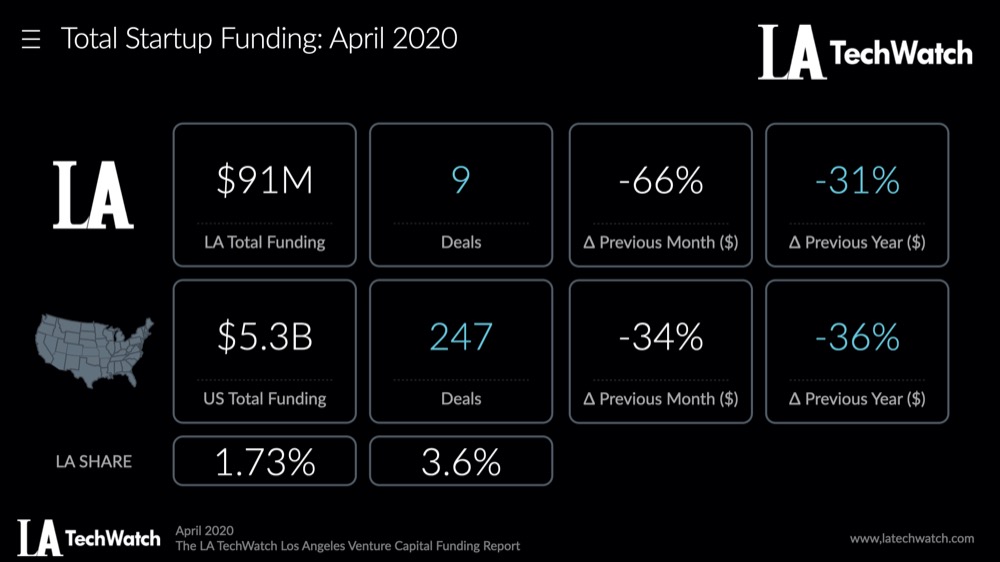 $91.2M was invested in LA #startups in April in LA across 9 deals Tweet This