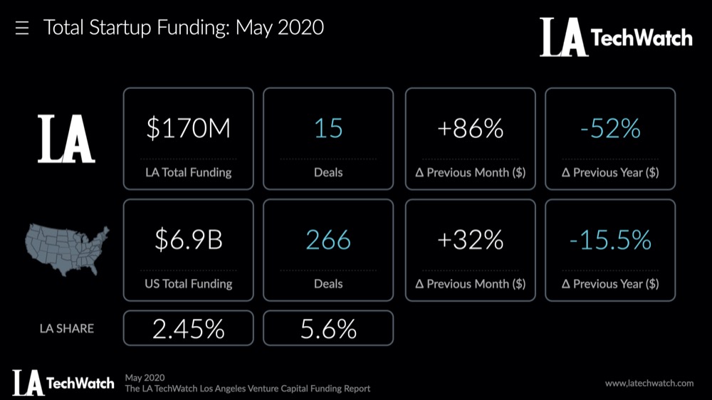 LA VC funding in May was +86% from last month and -52% from the same period last year Tweet This