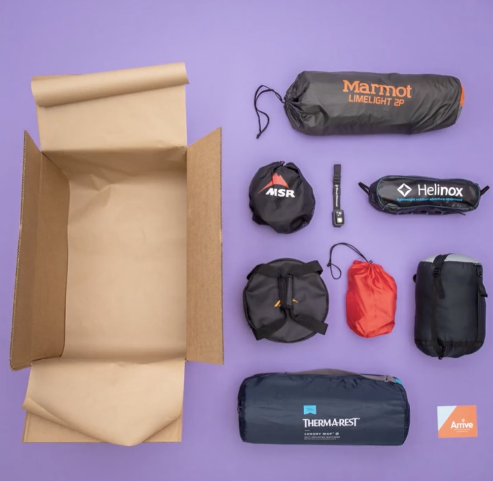 Arrive Outdoors offers gear rentals like tents, coolers, sleeping pads, cookware, camp furniture, and outdoor apparel and footwear from top brands. Arrive Outdoors makes it easy and sustainable for everyone to experience outdoor activities by dramatically lowering the entry cost, increasing access through delivery, and extending the life-time use of products. Reservations are free to make and can be canceled any time before shipment, free of charge. Gear is delivered to your home, hotel, or any FedEx shipping center.