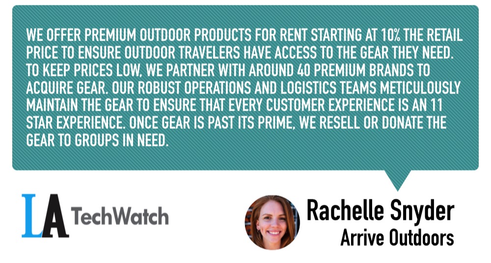 LA TechWatch caught up with CEO and Cofounder Rachelle Snyder to learn more about Arrive Outdoors and how it fills a gap in the market, how the company is making the exploration of the outdoors more accessible, and the company’s recent funding round.