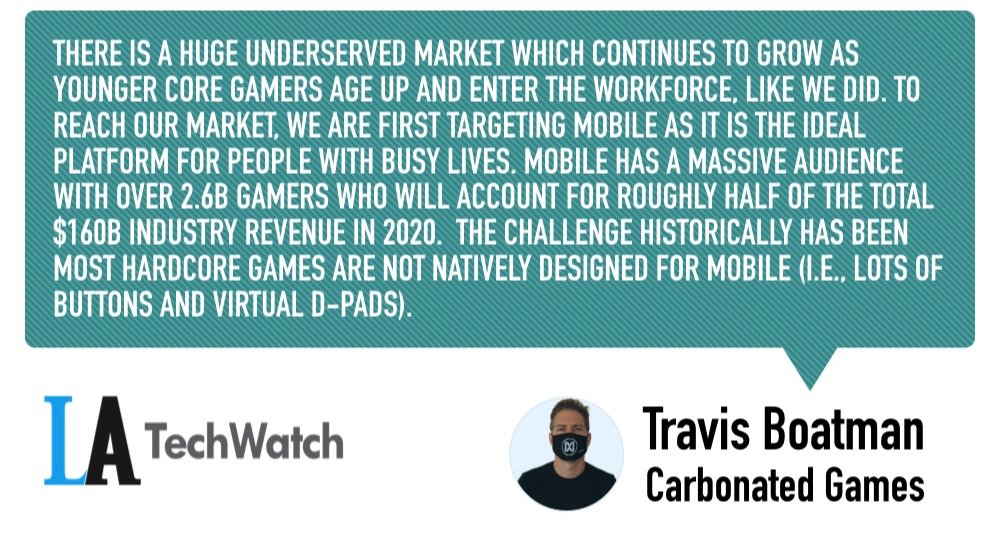 LA TechWatch caught up with CEO and Cofounder Travis Boatman to learn more about the inspiration behind Carbonated Games, the founding teams’ game development experience, and funding round. Prior to founding Carbonated Games in 2015, Boatman built mobile games at EA, Jamdat, and Zynga.