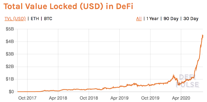 I know DeFi is our Netscape moment because it’s scaling, rapidly. Just like Netscape’s browser did. The market is screaming that DeFi has found product-market fit. Total value locked in DeFi is up more than 4X in two months: