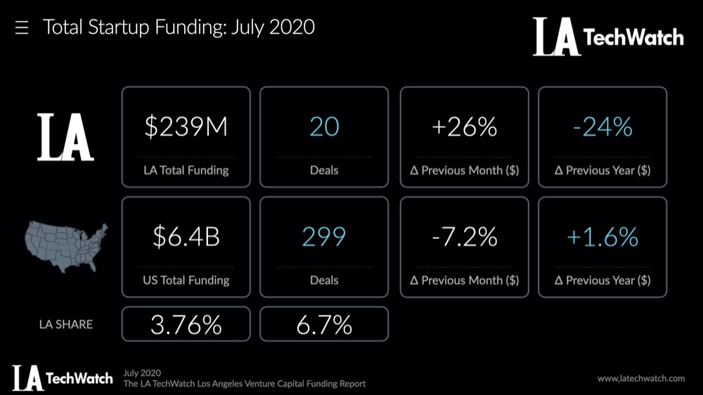 $239.2M was invested in LA #startups in July in LA across 20 deals Tweet This