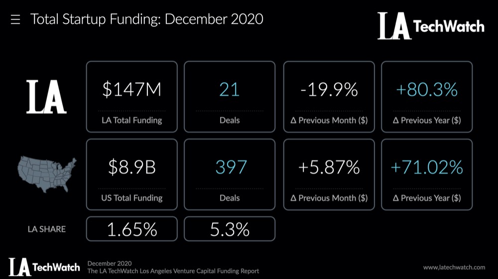 $146.7M was invested in LA #startups in December in LA across 21 deals Tweet This