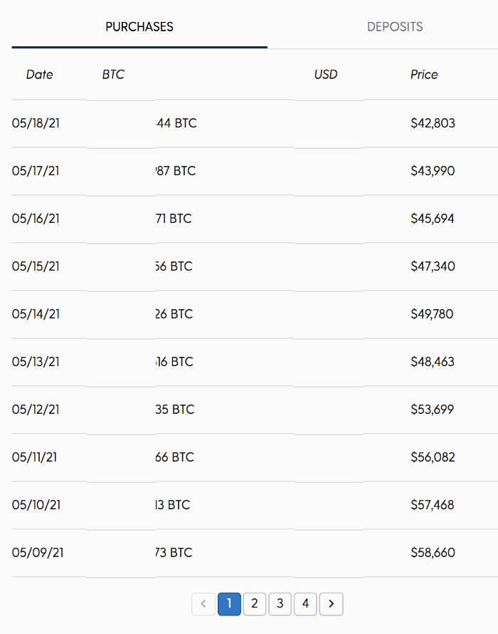 So I dollar-cost average. It eliminates the effects of investor psychology and market timing on my bitcoin holdings. I simply committed to a certain dollar amount I’m going to invest on a daily basis, and I set it and forget it. When the market goes down, I get to buy bitcoin cheaper, and cheaper, as has been happening for the last 10 days: