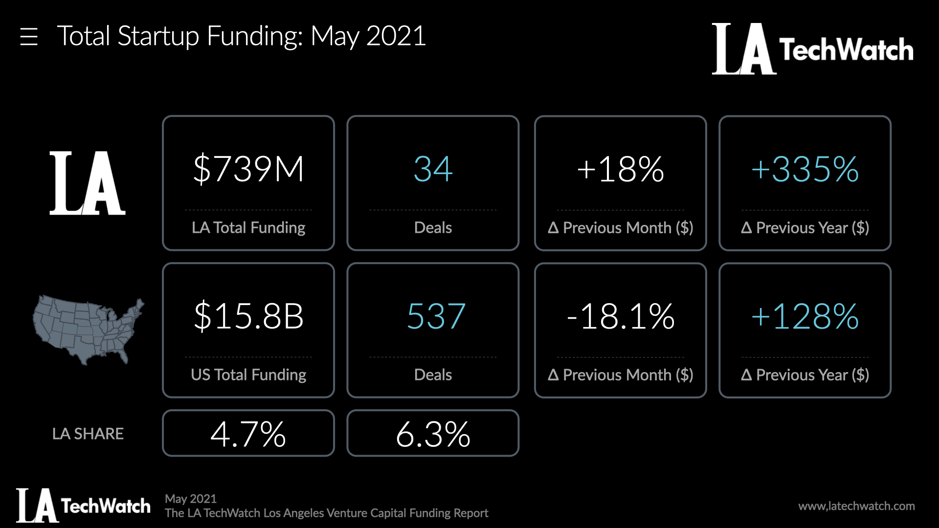 4.7% of startup funding nationally went to startups in LA in May Tweet This