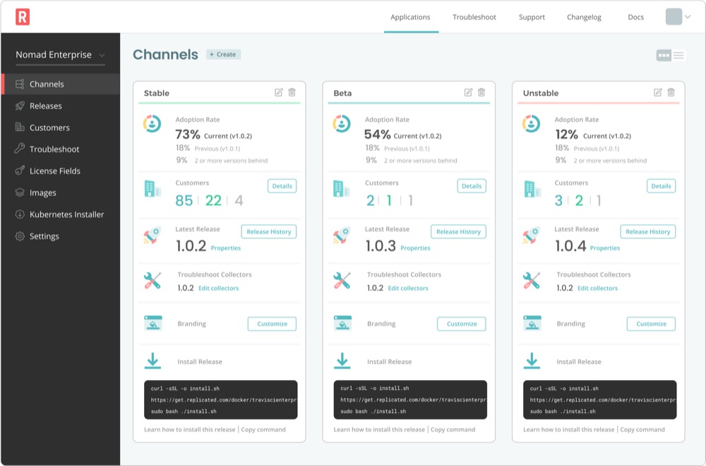 We enable independent software vendors to quickly deliver and manage their cloud-native Kubernetes applications to virtually any on-prem, customer-controlled environment. By addressing app delivery needs like license management, channel targeting, and troubleshooting, Replicated simplifies the app lifecycle for software vendors so that they can specialize in what they do best — app development.