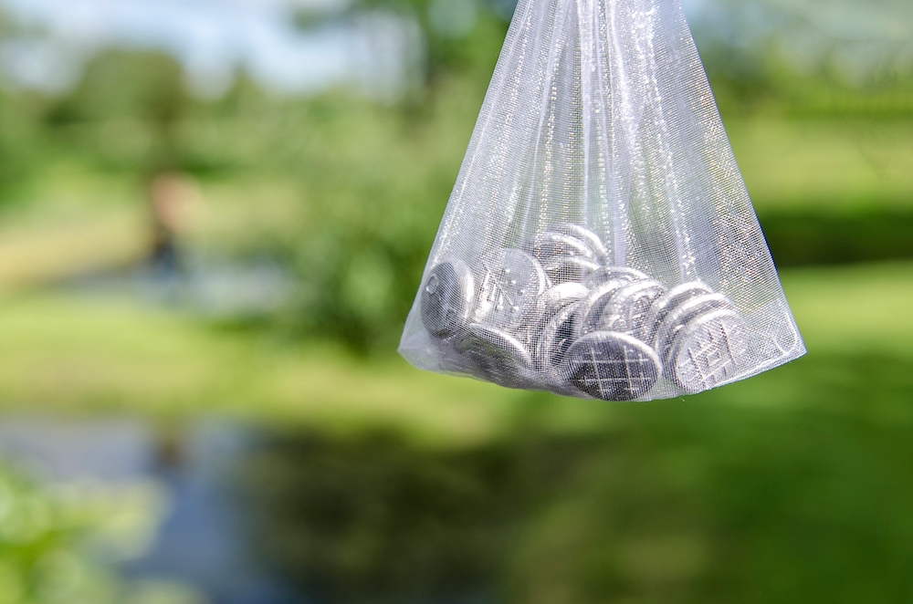 Bag with wedding day inbound souvenir coins.