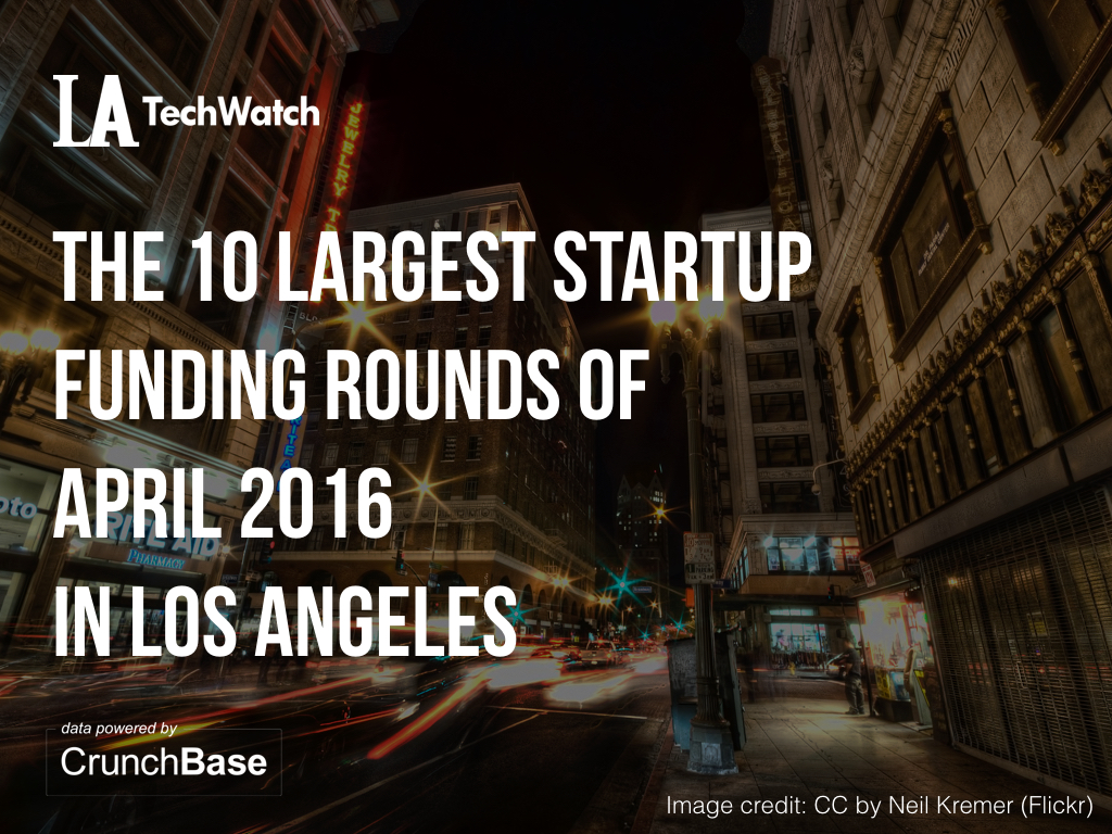Armed with some data from our friends at CrunchBase, I broke down the 10 largest rounds in Los Angeles during the month of April. I have included some additional information as well such as industry and investors in the round, to further the analysis. For the purposes of this analysis only equity funding rounds were considered and biotech financings were ignored to keep a focus on tech-enabled startups.