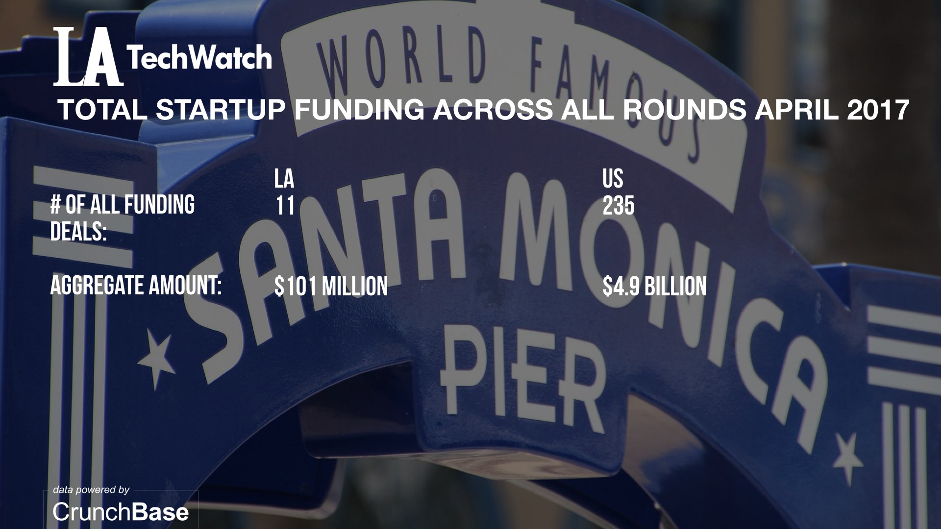 2.05% of startup funding nationally went to startups in LA in April Tweet this