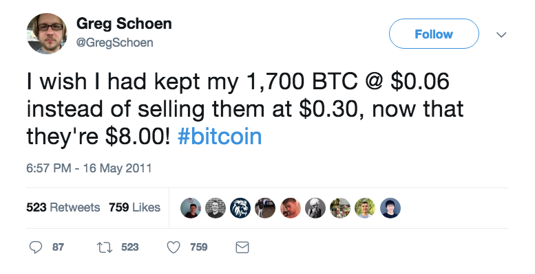 Whenever anyone asks me if it’s too late to get in to Bitcoin, I’ll just share this tweet from 2011: