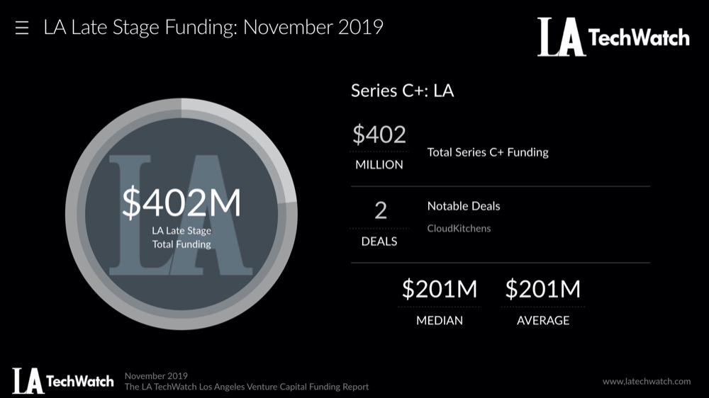 The median Series C+ round in LA for November was $201.0M Tweet This