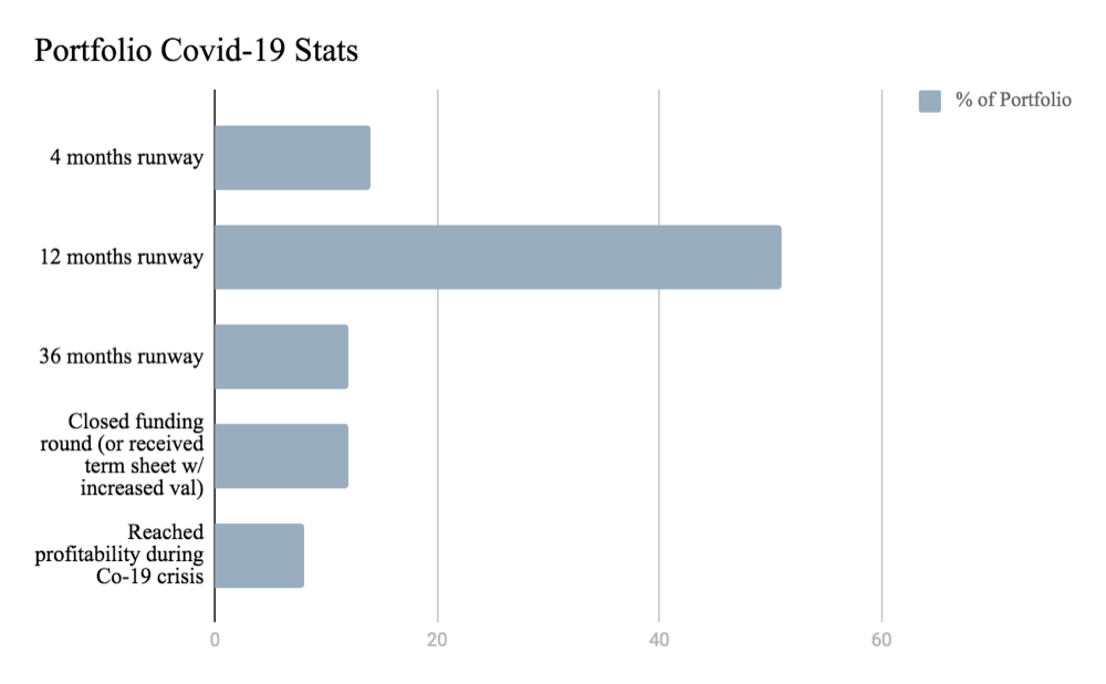 It’s extremely gratifying to see nearly half of our active portfolio companies are safe for at least the next 12 months. And we are delighted so many companies have even thrived during this crisis.