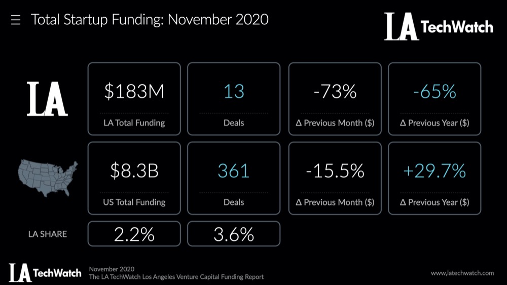 LA VC funding in November was -73% from last month and -65% from the same period last year Tweet This