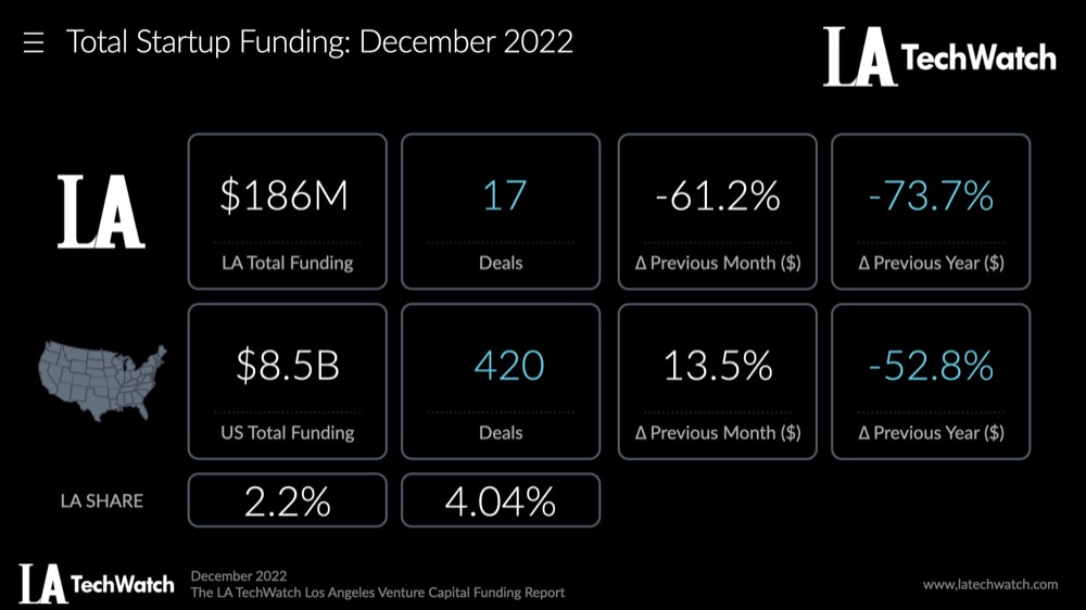 $185.8M was invested in LA #startups in December in LA across 17 deals Tweet This