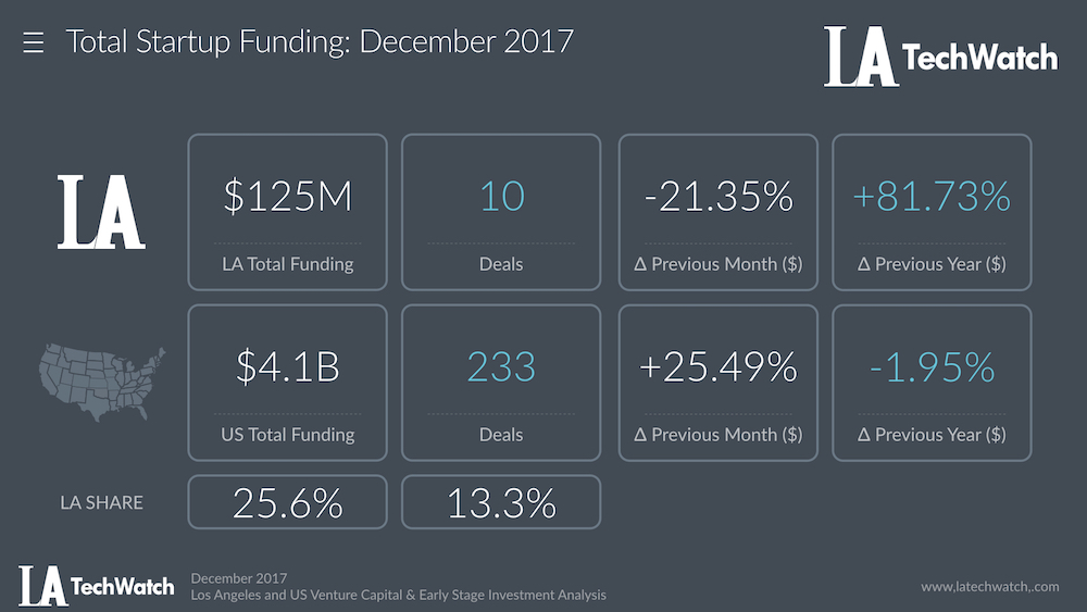 $125M was invested in #startups in December in LA across 10 deals Tweet this