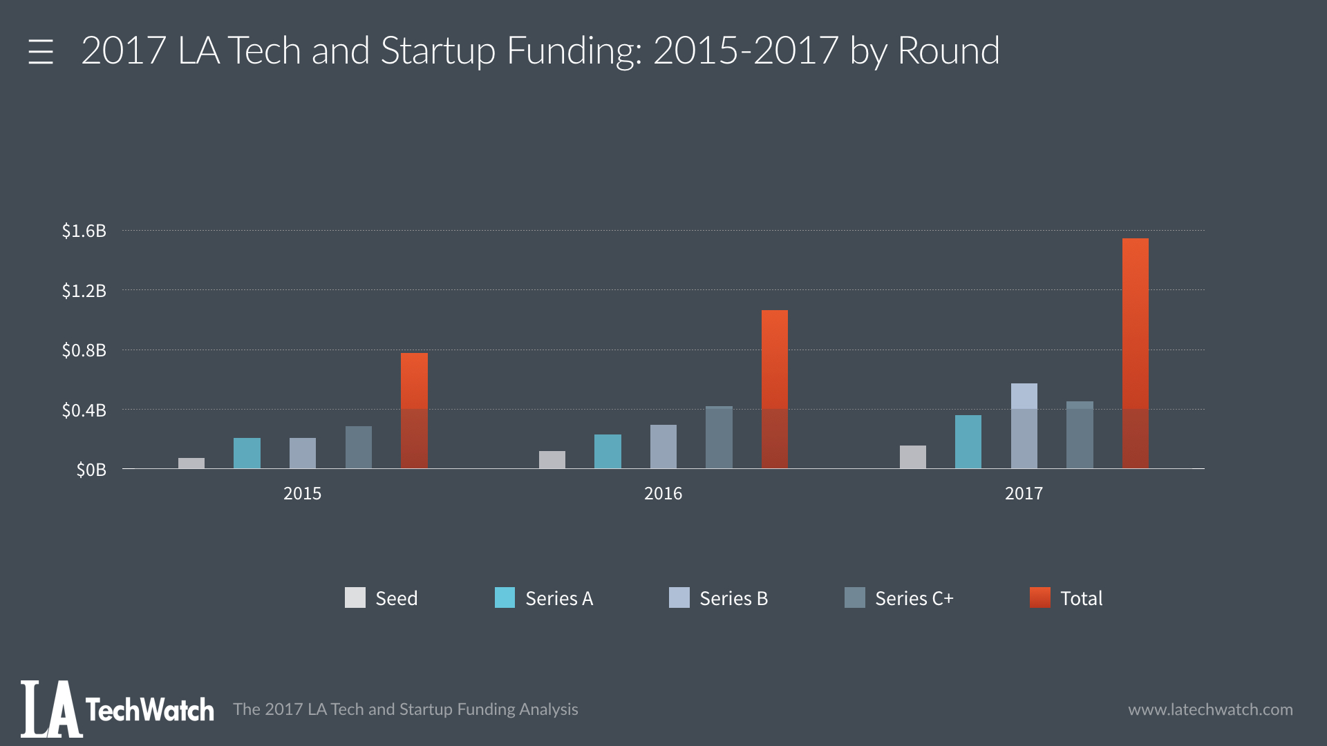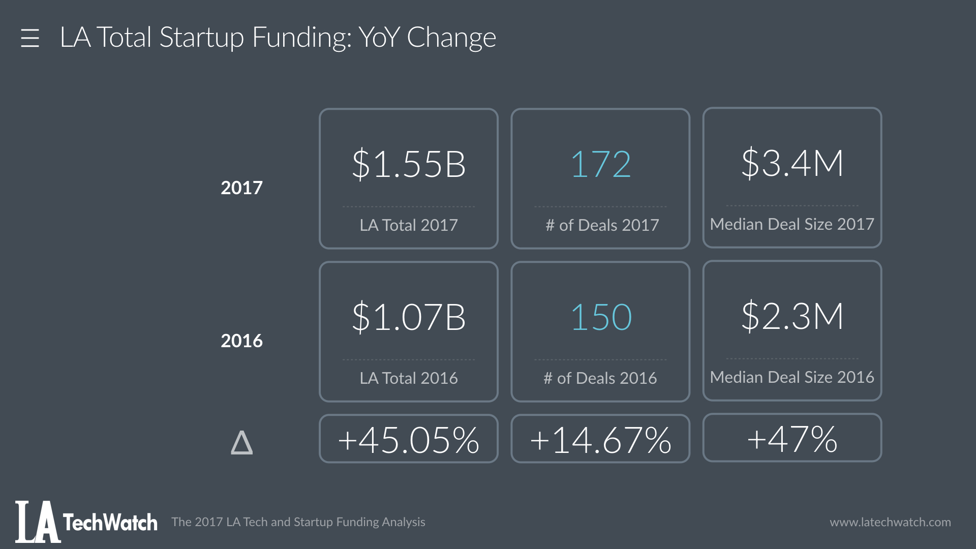 LA Startups raised $1.55B in 2017, up 45% from 2016 Click to tweet
