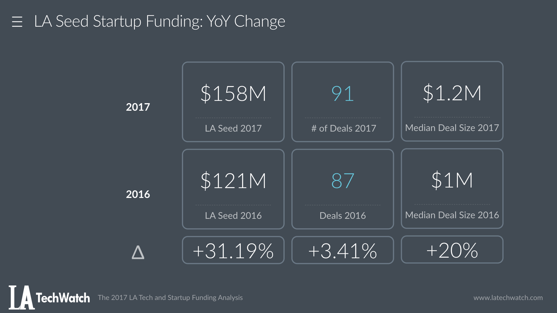 LA Startups raised $158M in seed funding in 2017, up 31% from 2016 Click to tweet