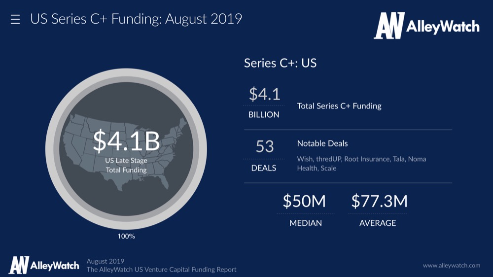 The median Series C+ round in the US for August was $50.0M Tweet This