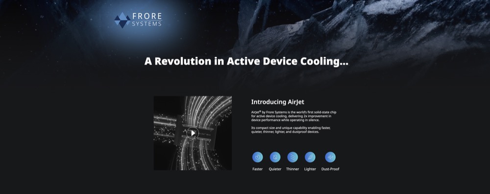 Description: San Jose-based Frore Systems is a developer of thermal technology for consumer devices. Founded by Seshu Madhavapeddy and Suryaprakash Ganti in 2018, Frore Systems has now raised a total of $100.0M in total equity funding and is backed by Alumni Ventures, Qualcomm Ventures, Addition, Clear Ventures, and Mayfield Fund.
